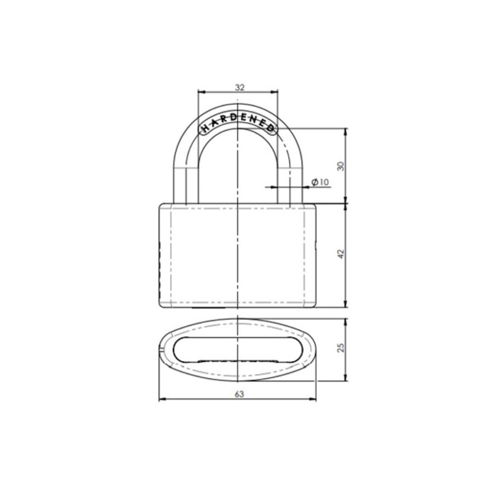 • kalený třmen zámku (HARDENED)