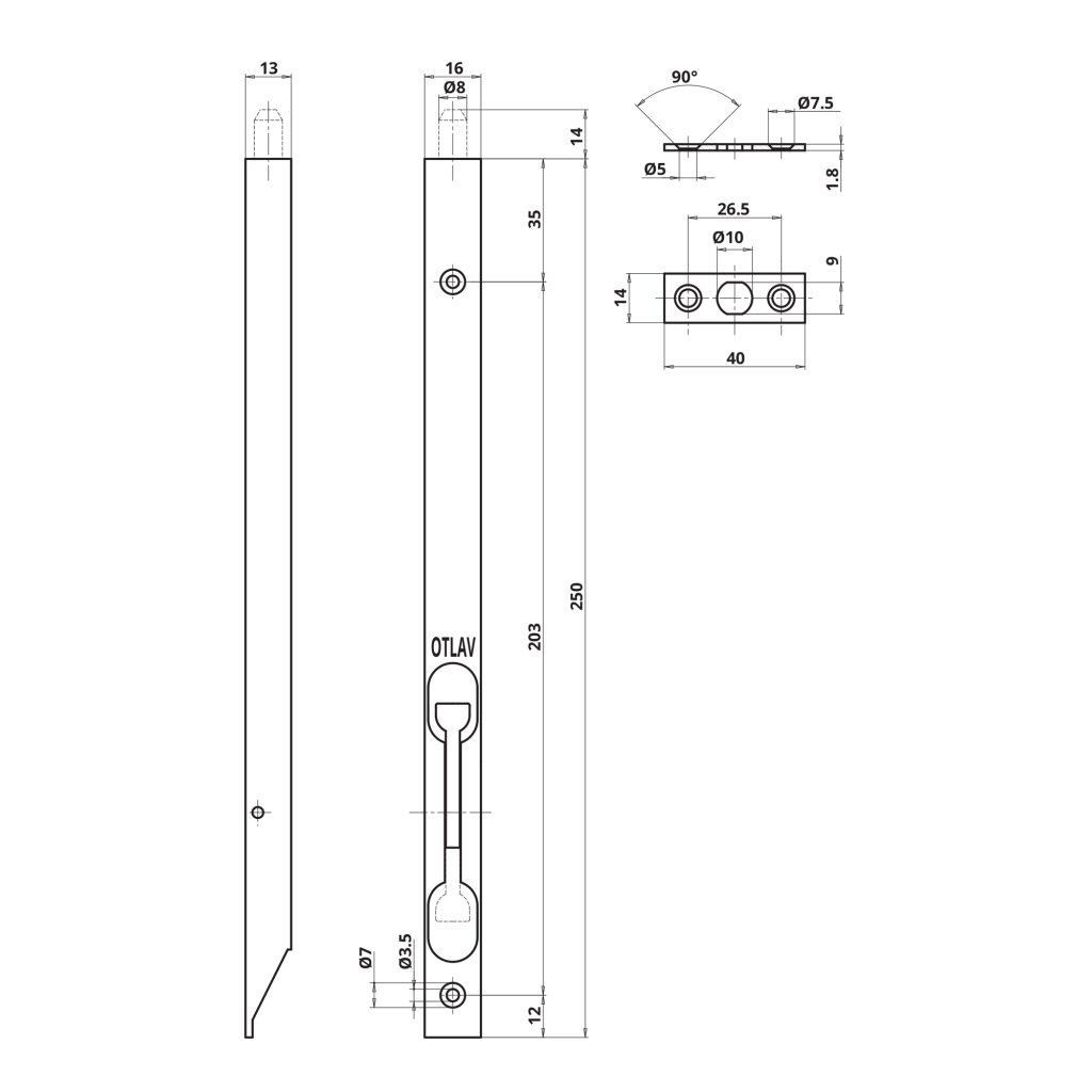 Záklopká dveří L260/250 mm OTLAV