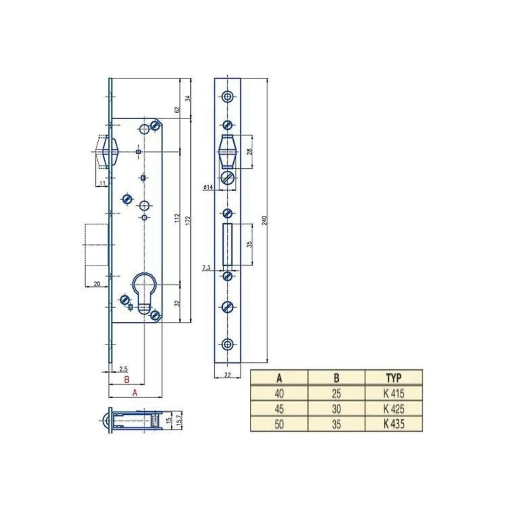 Zadlabací dveřní zámek pro vložku s válečkovou střelkou